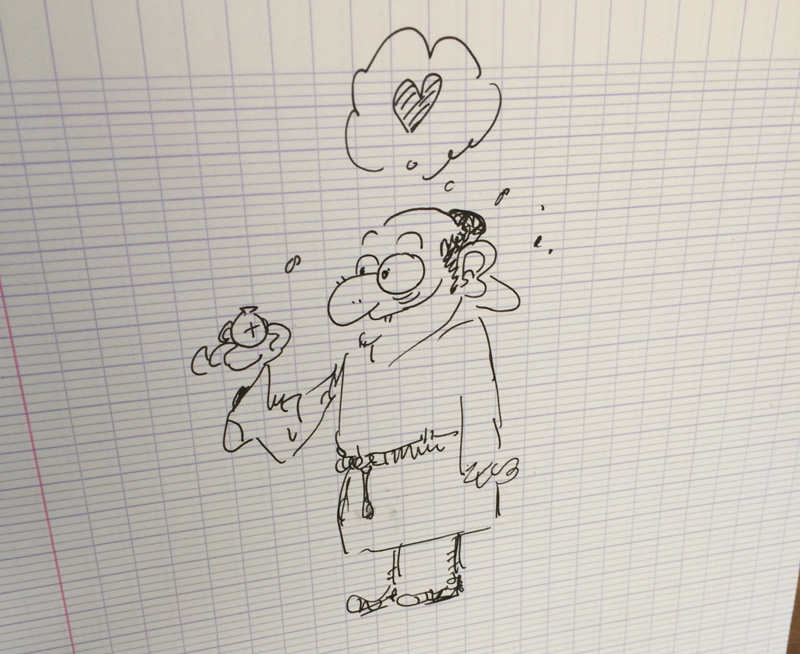Petit croquis de David fait en quelques minutes à l’aéroport