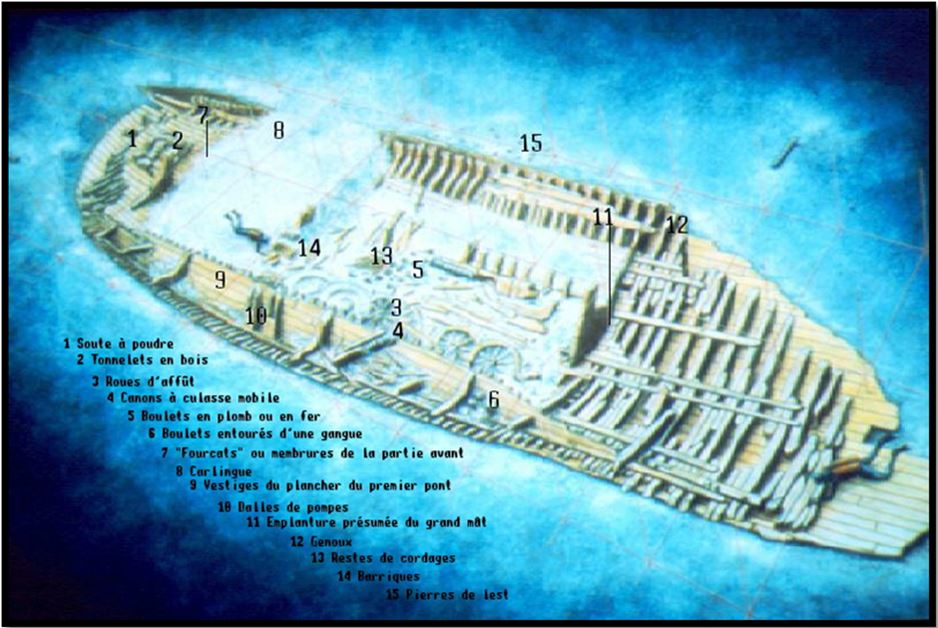 Le rapport évoque également un contexte guerrier. L’hypothèse d’un combat naval est possible mais je n’ai trouvé aucun document qui relate un tel fait dans la baie de Villefranche-sur-Mer à cette époque. Des recherches en archive complémentaires doivent être menées.